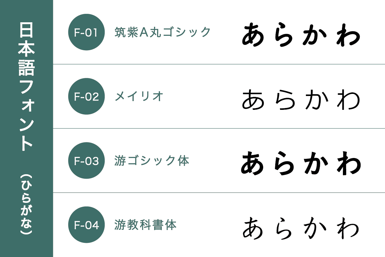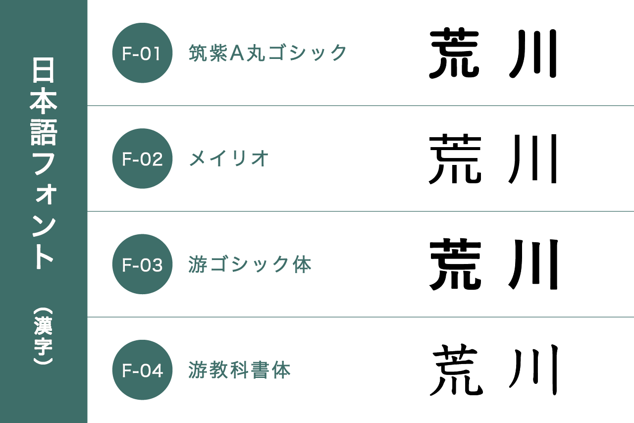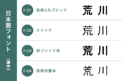 日本語フォント(漢字・ひらがな・カタカナ)4種類、英語フォント4種類の中からお選びください。