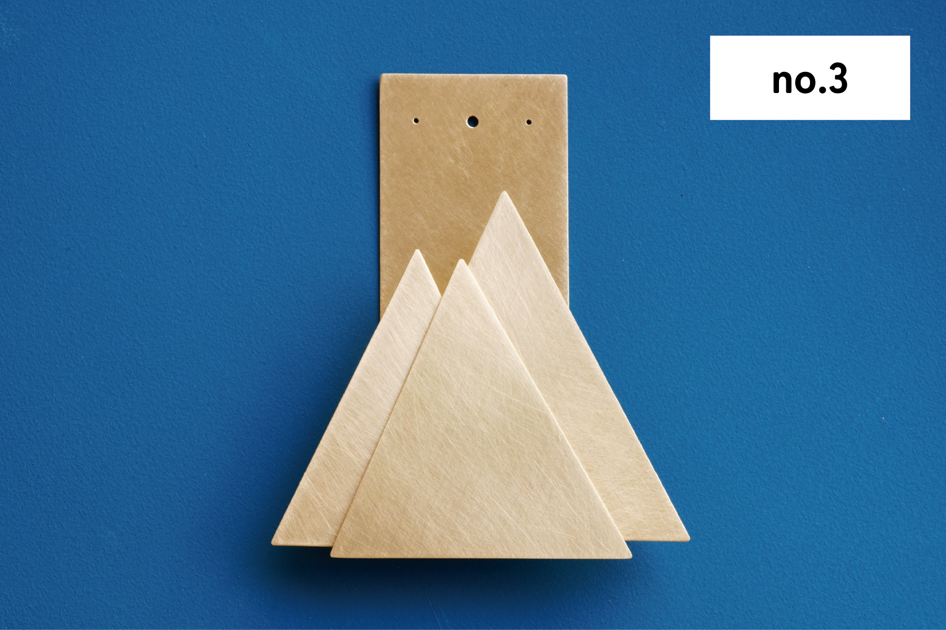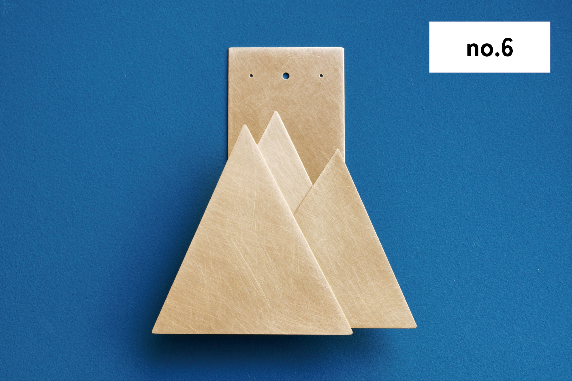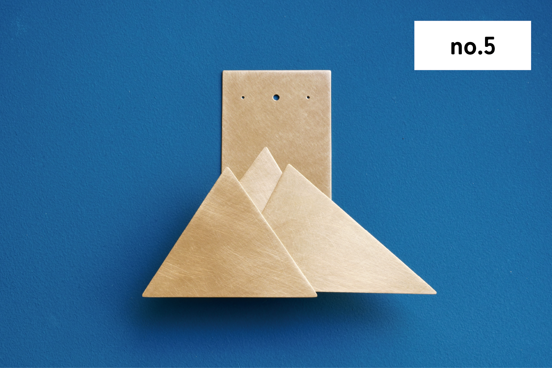 大きさ・形の異なる三角形の真鍮板を重ねて製作した、一点モノです。
