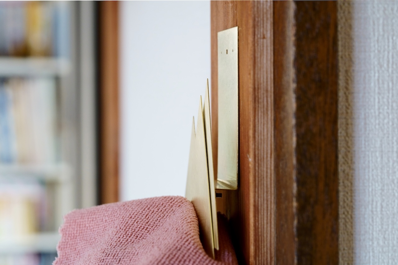 また、賃貸物件などビス留めが気になる場合は、両サイドの孔を利用し、お手持ちの押しピンで留めてください。