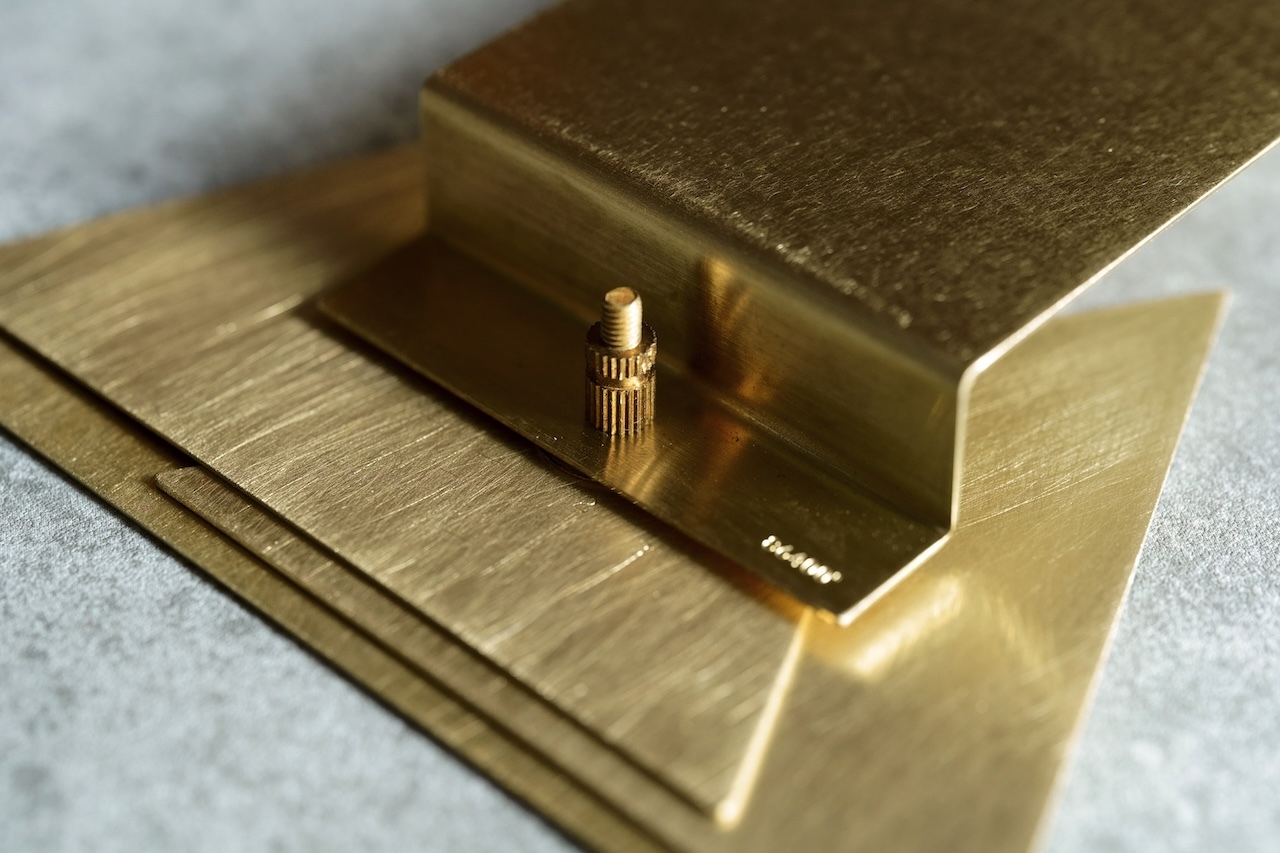 神棚は、真鍮板の曲げ加工から、研磨、取り付けまで、一つずつ手作業で製造しています。機械で抜き出したのとは少し違う、柔らかい表情を目指しています。