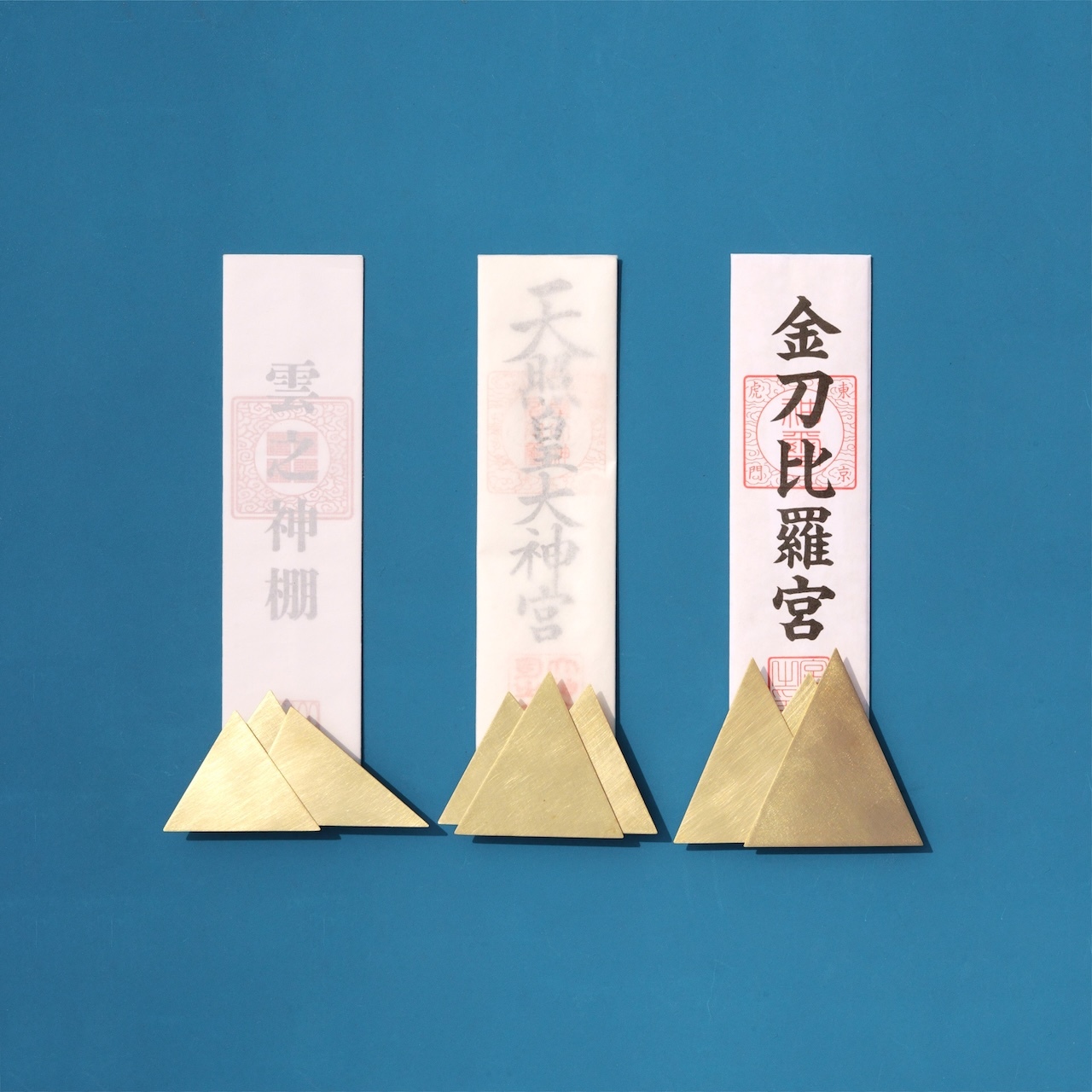 神棚の三角真鍮板は、1つひとつの大きさ・形が異なる1点モノです。