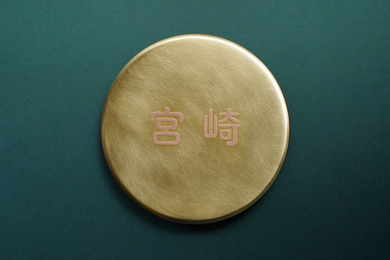 銅版画の技術を応用し、マスキングした金属板を腐食液に浸して溶かすことで、文字やロゴ部分だけを浮き出します。