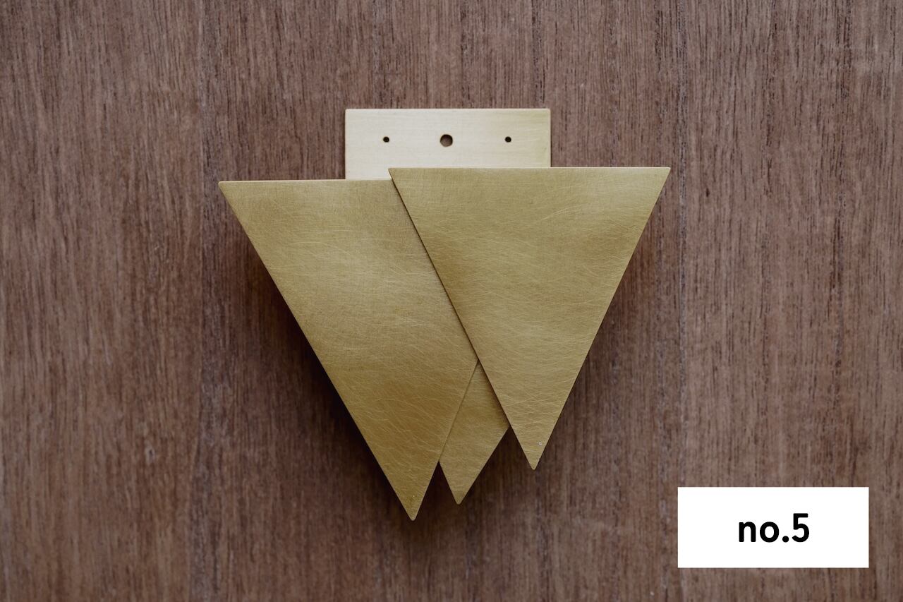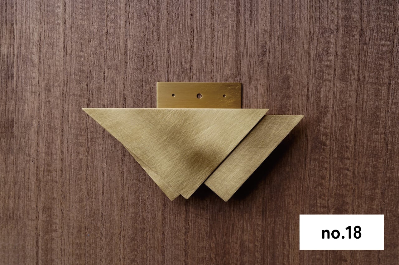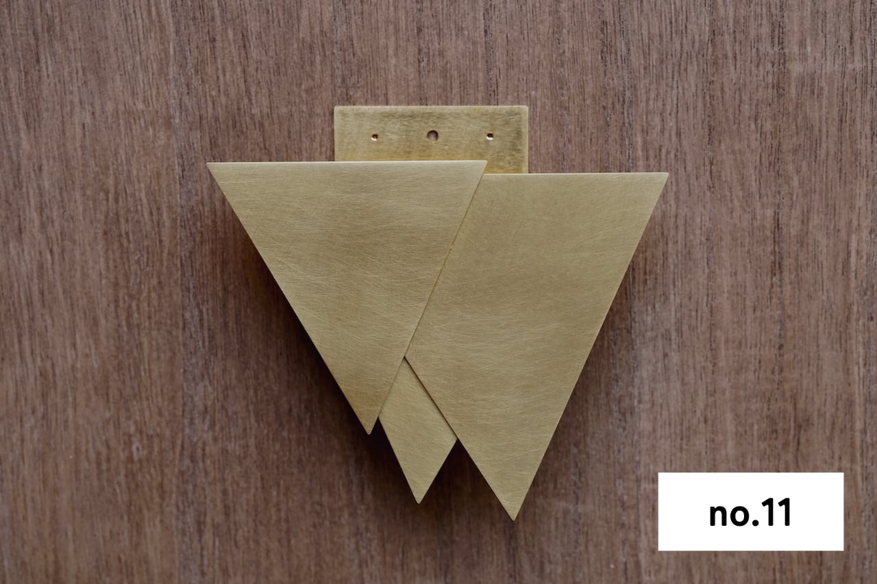 大きさ・形の異なる三角形の真鍮板を重ねて製作した、一点モノです。